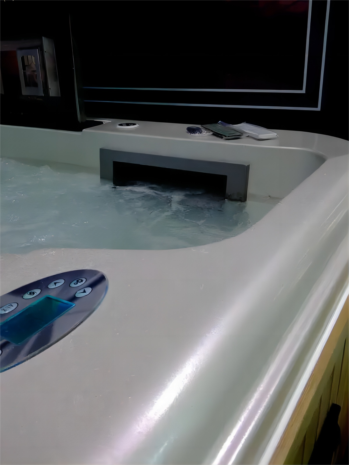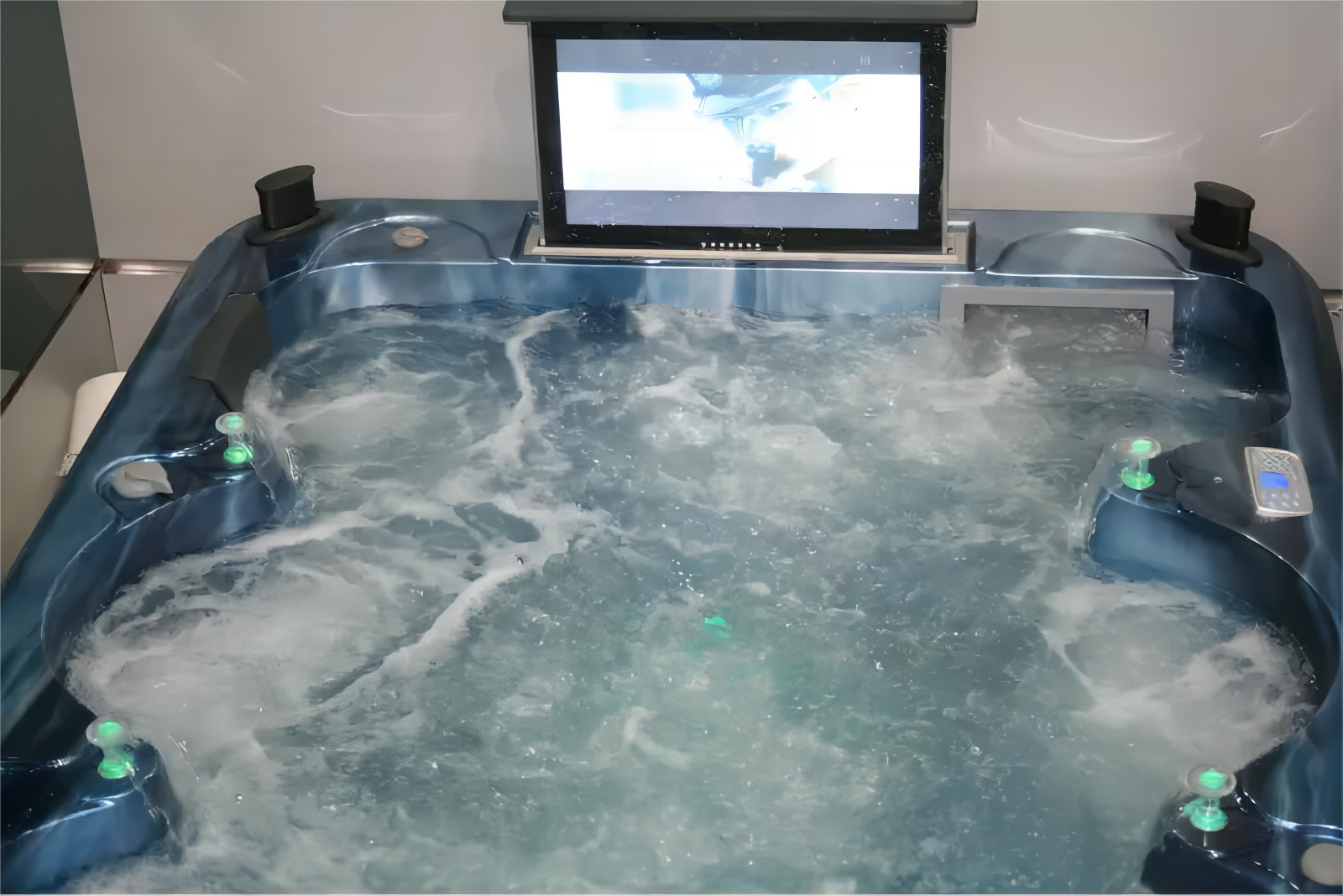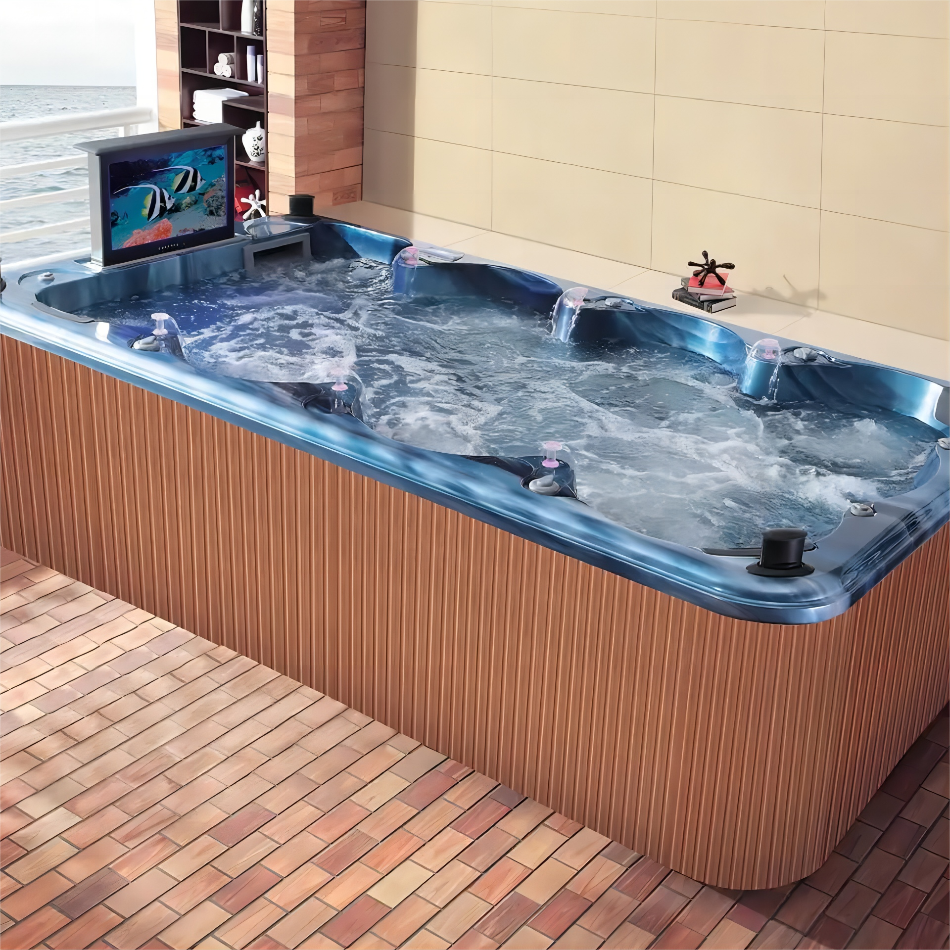 WS-S04X Factory Custom 4 Meters 8 persons massage tub and Fiberglass Swimming Pool outdoor swim spa with pop-up TV
